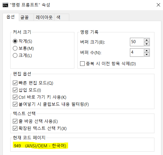 Window cmd에서 한글이 깨질 때 시스템 인코딩(cp949)을 변경